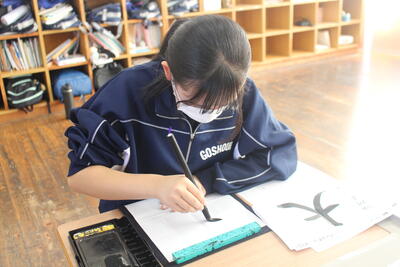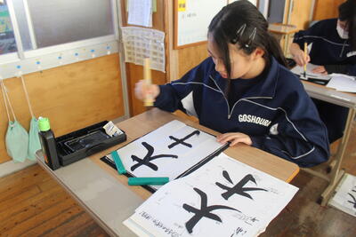 中学1年生の国語の授業で、書道の学習を行いました。