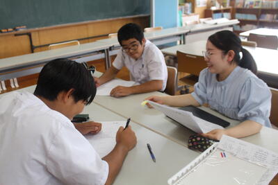 本校では、GSL(Goshoura Small group Learning)を取り入れ、少人数での学習活動を行っています。今回は数学の授業で実施し、生徒一人ひとりが自分のペースで学習内容を深めることができました。少人数ならではのきめ細やかな指導により、基礎的な学力の定着を図るとともに、学習への意欲向上にもつながりました。