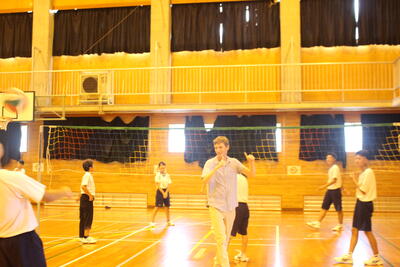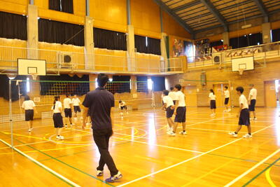また、昼休みには生徒たちと一緒にバレーボールを楽しみ、交流の輪を広げていました。