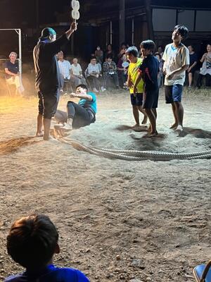 9月17日 【十五夜】各地区の綱引きや相撲大会に中学生と先生達も参加しました!