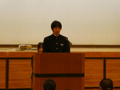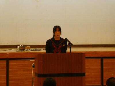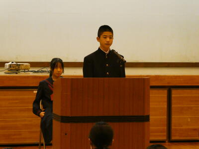 始業式では、各学年の代表生徒が新学期の目標を発表しました。学習や部活動、学校生活に向けた前向きな思いが語られ、新しい一年への意欲が伝わってくる時間となりました。