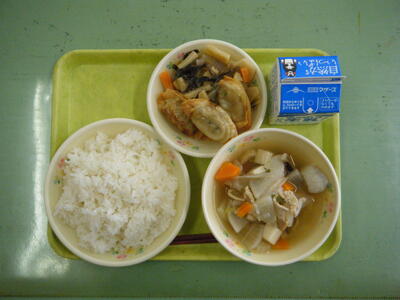 今日の運動会練習はダンスの練習でした。テンポの速いリズムに悪戦苦闘しながらも、ダンスを覚えようと、ダンスリーダーを中心に一生懸命練習を頑張っていました。また、今日の給食は、肥後ギョーザ たけのこのひこずり けんちん汁でした。ふるさとくまさんデーの「山鹿の味」です。ひこずりとは春の郷土料理で、たけのこをみそ、砂糖、みりんなどで甘辛く炒り煮した料理だそうです。みそをたけのこに「すりつける(ひこずる)」ように味をからめることから名付けられ、赤酒を使うとより風味豊かに仕上がるとのことです。春の料理を美味しくいただきました。