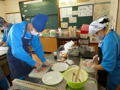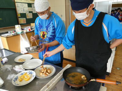 2年生 家庭科調理実習の様子(天草産ぶりを使ったメニューづくり)