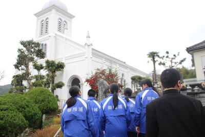 事前学習では、﨑津の歴史や町並み、信仰と暮らしの関わりについて調べ、疑問点やさらに知りたいことを整理しました。見学当日は、その疑問をもとに、施設の方やガイドの方に直接質問をしながら説明を聞き、理解を深める姿が見られました。