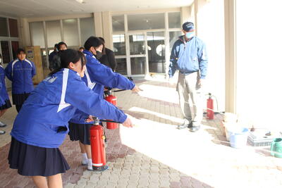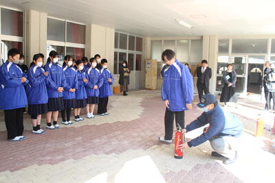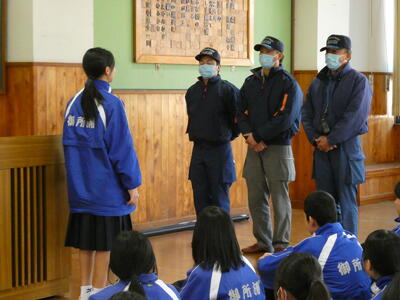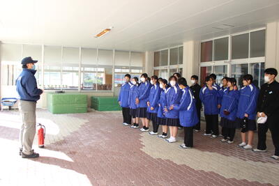 火災を想定した避難訓練を行いました。実施にあたって天草広域連合中央消防署御所浦分署より3名の消防署員の方々をお招きし、避難訓練の講評をしていただきました。