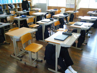 地震発生後、津波警報が発令されたという想定で、学校の裏山に避難しました。避難後、校長から東北地方に伝わる「津波てんでんこ」について話がありました。各教室では防災主任が作成した熊本地震についての資料を活用し、防災について学びました。各ご家庭でもこの機会に防災について話題にしていただきたいと思います。