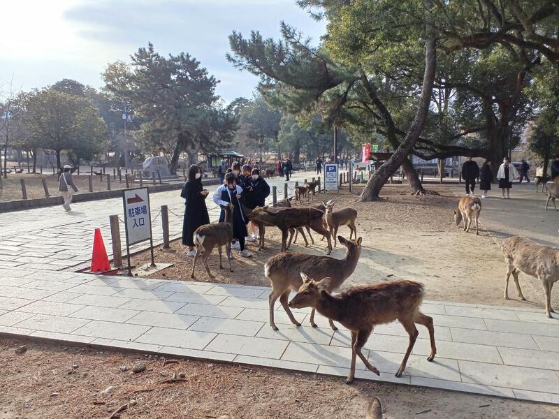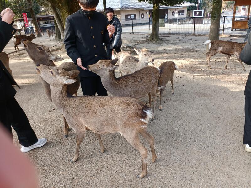 奈良公園到着 ガイドさんにごあいさつ