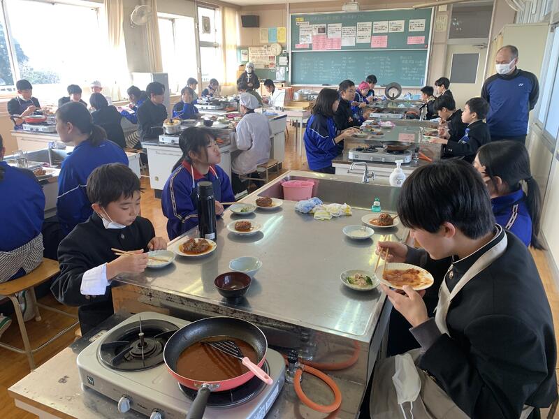 2年生は今日まで学年閉鎖です。1年生は家庭科の調理実習を行いました。何とか午前中に調理を終えて食べることができました。