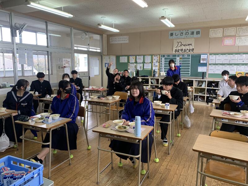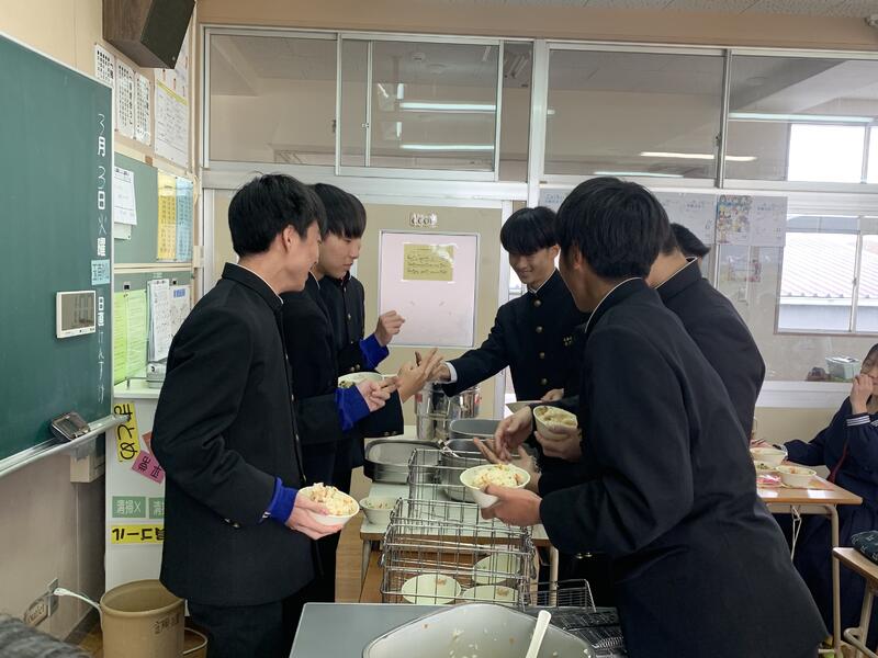 午前中3階からいい香りがしてきました。1年生は2回目の調理実習です!給食前ですが、おいしくいただきました。