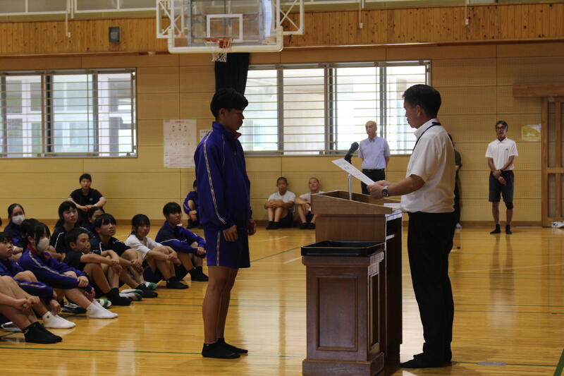 校長講話:①生徒意見発表を聞いて②夏休み玉南中生徒の活躍③大雨への備え④今後の学校生活⑤当たり前の質を上げよう…など