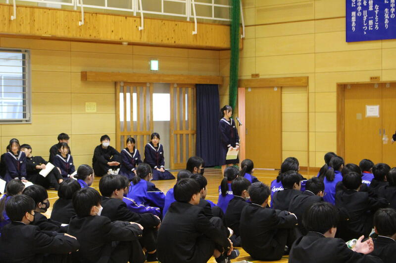 代表して生徒会長から最後のあいさつ:自分の言葉で堂々と~さすが!!