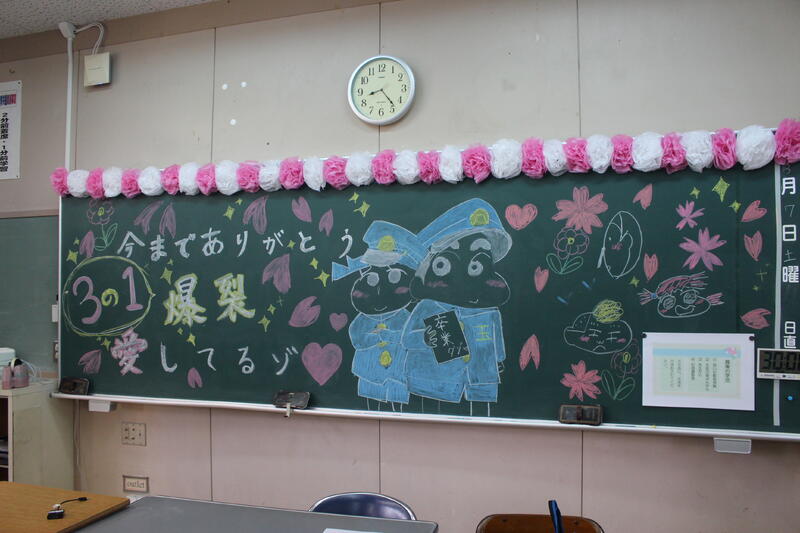 朝の3年1組後ろの黒板
