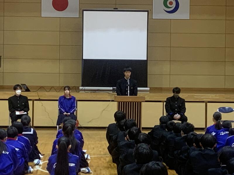 代表して生徒会長から最後のあいさつ:自分の言葉で堂々と~さすが!!