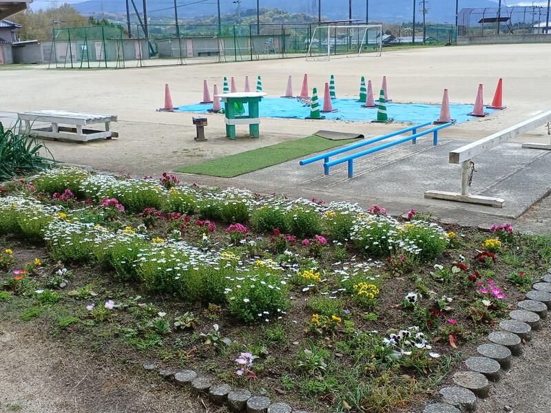 校庭の花も鮮やかに咲きほこっています