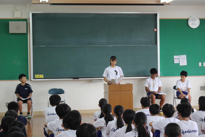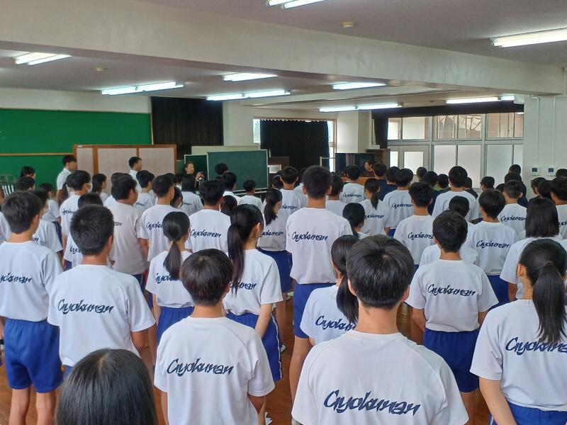 夏休み明け集会を多目的室で行いました。皆さんの笑顔も多く見られて安心しました。これからまた勉強や学校行事等にしっかり取り組み、心身共に成長することを期待しています。