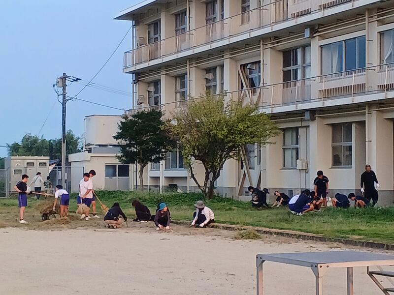 生徒を中心に草集め~なかなか終わりません!