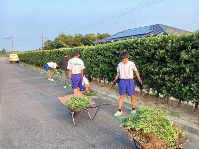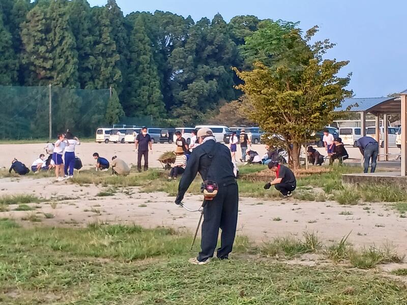 土曜日は早朝より本校PTA美化作業にご協力いただきありがとうございました。別日に作業をしていただきました保護者様にも感謝申し上げます。加えてトラックや草置き場も提供いただきました。今年も猛暑で草もかなり伸びていたので本当に助かりました。