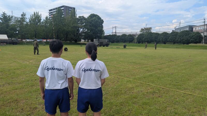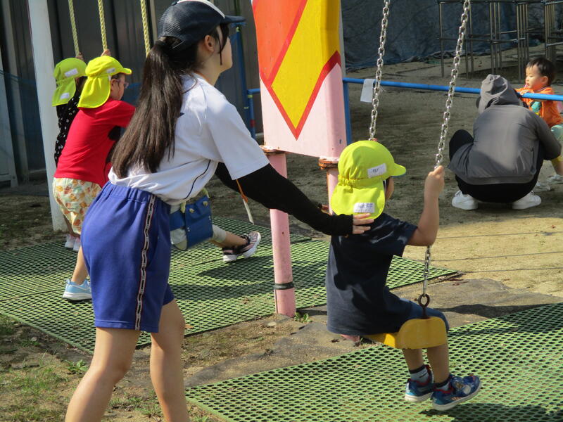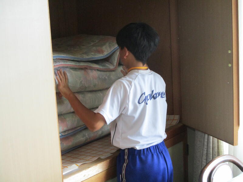 荷ひもで固定します。これは校外に出かけた時も実践しています。