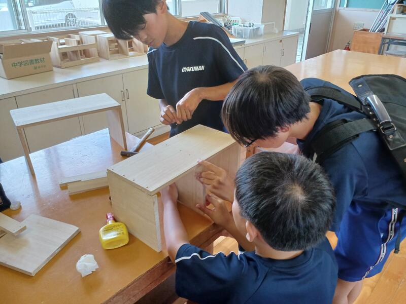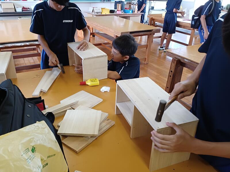 現在1年生は技術科で本立てを製作していますが、あと少しで完成です。最後の仕上げも頑張ってください!