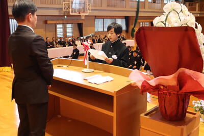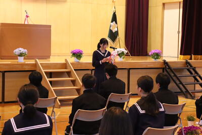 1年、2年、生徒会の代表が今年度の反省と来年度に向けての抱負を発表しました。
