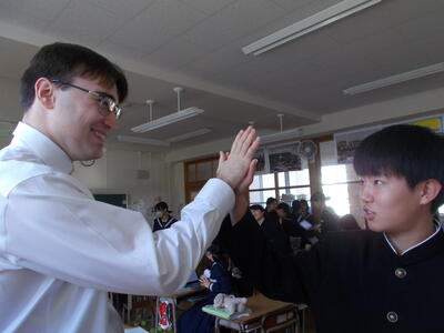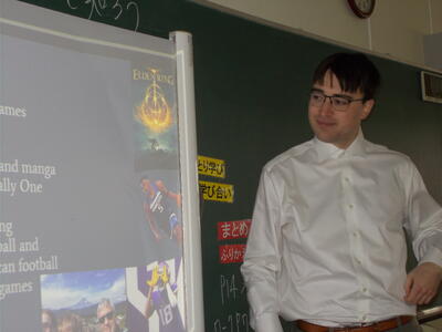12月から新しく、ALTのクリス先生に英語の授業でお世話になっています。
