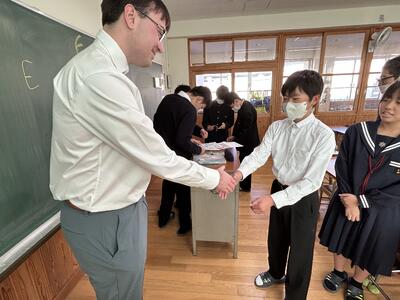 今日(10月31日)で、教育実習に来られていた牛嶋先生の、2週間の実習期間が終わりました。