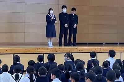 生徒代表の3人が、意見発表を行いました。