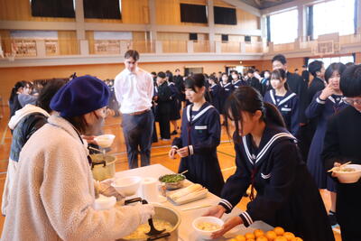 12月24日(木)が、2025年最後の授業の日でした。残念ながら駅伝大会は中止となりましたが、お昼の豚汁会は実施ました。