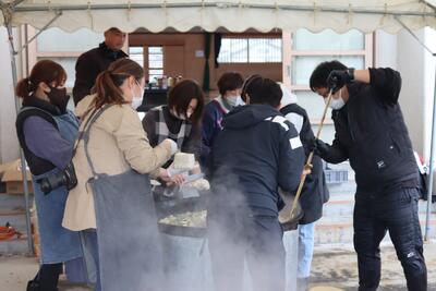 おいしい豚汁は、保護者の皆様と学校運営協議会の皆様に作っていただきました。