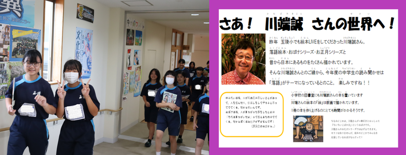 今年度のテーマは『落語』。昨年、絵本作家の川端誠氏が来校されたことと、事前に、小学校の図書室から発信して下さった“落語”への誘い。