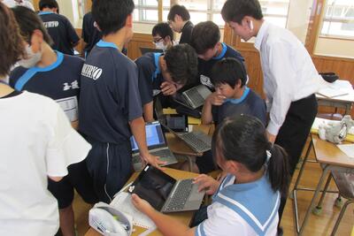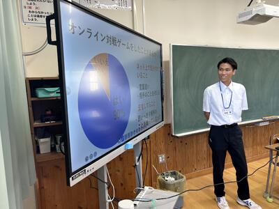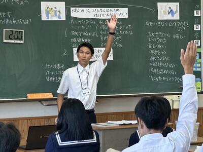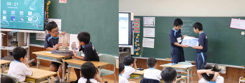 グループ学習や発表の様子から、普段からの1年2組の仲の良さが伝わる授業でした。