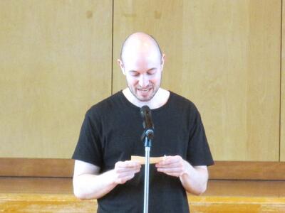 昨日(7月2日)の夕方は、阿蘇は雨が降り雷も鳴っていたので、夕べの集いは体育館で行いました。