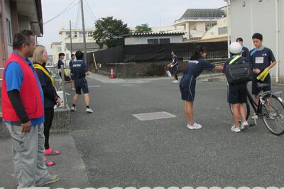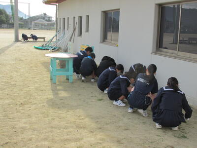 今回は中学校理科室から出火したとの想定で、運動場に避難しました。