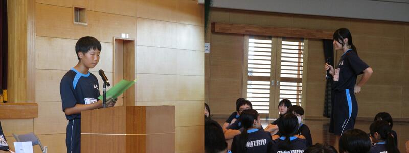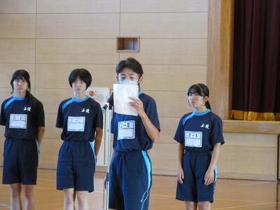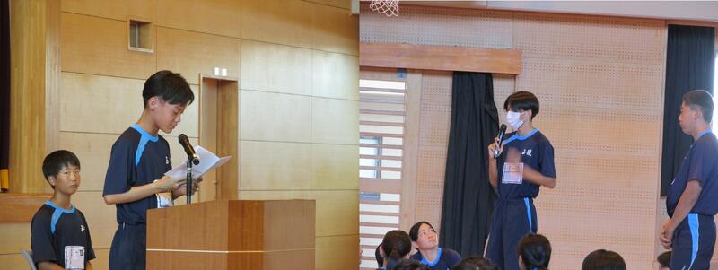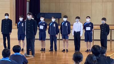 表彰のあと、生徒の意見発表とその返し、校長先生の話などがありました。