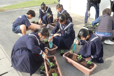 今回は、プランターの苗植え、校内の除草、県北病院の花壇の草取り苗植えなどを行いました。