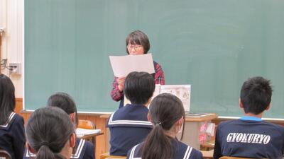 小中合同企画、絵本の読み聞かせボランティアPROJECT。すっかり定着して、読み聞かせに行く中学生も、緊張より楽しみが勝つようになりました。