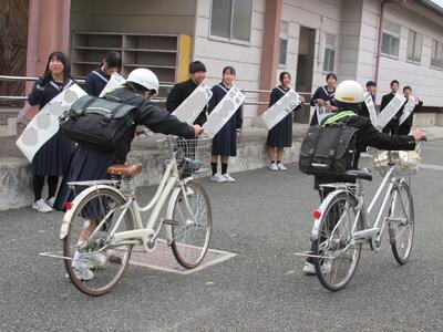 今日(10月8日)、「世界ライオンズデー 青少年健全育成・薬物乱用防止キャンペーン」で、玉名ライオンズクラブの方々の活動に生徒会が協力して、薬物乱用防止のチラシとティッシュを配りました。