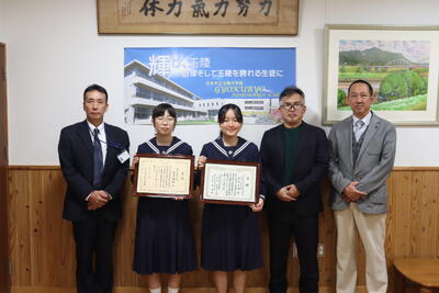 「玉名税務署長賞」を3年生の荒木さんが、「南九州税理士会玉名支部支部長賞」を3年生の宮本さんが受賞しました。