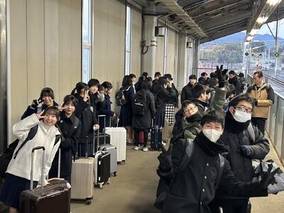 修学旅行① 投稿日時 : 01/26 学校サイト管理者 今日(1月26日)から、2年生は、2泊3日の修学旅行です。みんな元気に新玉名駅を出発しました。 博多駅で乗り換えて新大阪駅へ、その後奈良へ向かいます。いろいろな体験をして、たくさん思い出をつくれるといいですね。