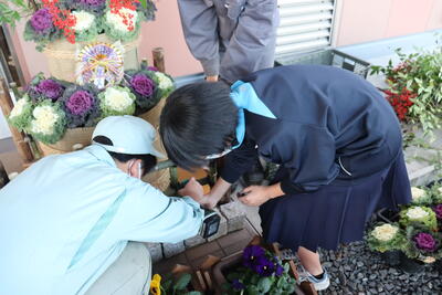先週の金曜日(12月5日)フラワープロジェクトとして、学校運営協議会の方々と一緒に小中合同でプランターに植えた花を、新玉名駅に飾りに行きました。
