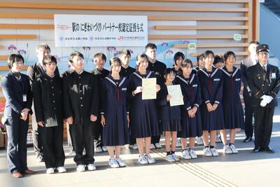 また、JR九州から「駅のにぎわいづくりパートナー校」に小学校と共に認定され認定証が授与されました。