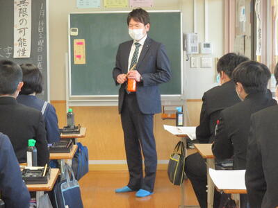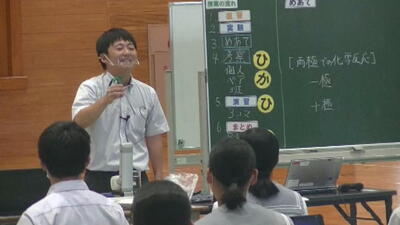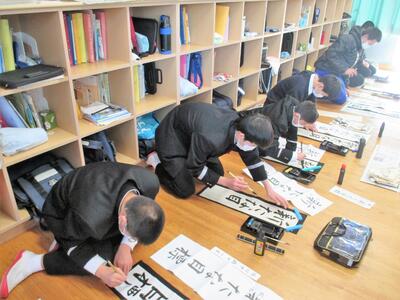 新年はじめの行事として、書き初め大会を実施しました。講師として御船高校古閑雄介先生に来校いただき、生徒へご指導をいただきました。