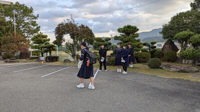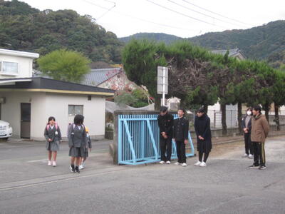 小学校、中学校、それぞれの正門に中学生が立って、登校してくる児童生徒にきもちのよい挨拶を行っています。朝は寒いですが「おはようございます」の声が響くと、元気が出てきますね。