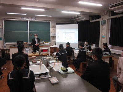 今日の5・6時間目は、熊本高専八代キャンパスからお二人がお見えになり、3年生に理科の授業を行っていただきました。