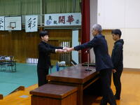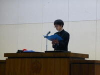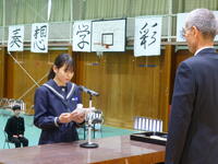 練習後に修了式を行いました。「今年は挑戦と成長の1年だった」というテーマで代表生徒が作文を朗読してくれました。校長先生は明日の式辞内容の予習をされました。