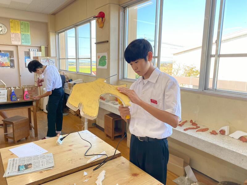 美術の時間に、卒業制作として一大プロジェクトに取り組んでいます。