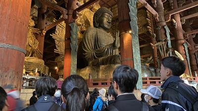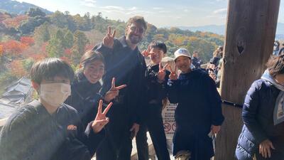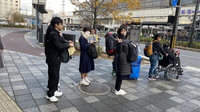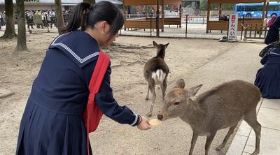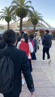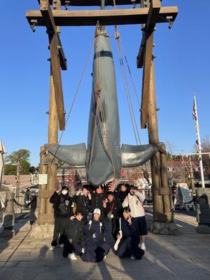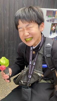 今日はALTの先生の来校日。アメリカからやってきたばかりの先生に、日奈久の“good place”を生徒たちが英語で紹介しました。