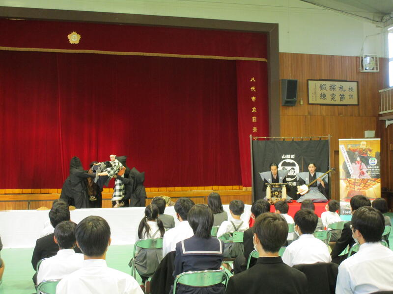 11月28日に「いきいき芸術体験教室」を実施しました。この教室は、生の芸術に親しみ、豊かな創造性や情操を養うことを目的とし、県教育委員会が募集しています。「清和文楽」の鑑賞会を本校で実施する運びとなりました。「むじな」「雪女」を鑑賞した後、子供たちは人形操作を体験することもできました。最後に、丸尾うららさんが、「人形の表情や動きがリアルですごかったです。語りや三味線で人形の感情が表されていてとてもおもしろかったです。」とお礼の言葉を述べてくれました。