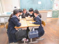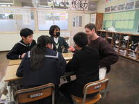 5時間目は1年生の授業で、ALTの先生方に冬休みの出来事を話題にして英会話を行いました。