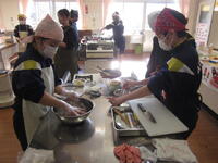 今日の5・6時間目、1年生の家庭科は調理実習でした。